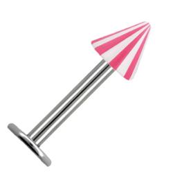 Ajak piercing, csíkos rózsaszín acryl tüskével