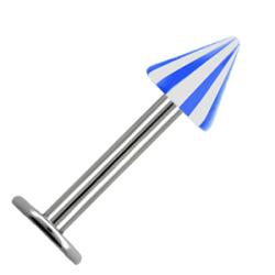 Ajak piercing, csíkos sötétkék acryl tüskével