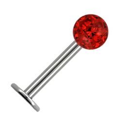 Orvosi acél ajak piercing, piros körbe köves golyóval.