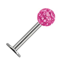 Ajak piercing, rózsaszín körbe köves bevonatos golyóval