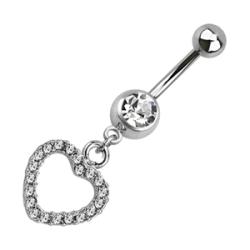 Orvosi acél fehér kővel kirakott szív köldök piercing.