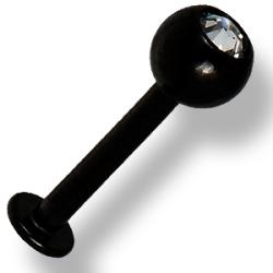 Fekete PVD ajak ékszer, fehér köves golyóval
