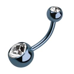 Fényes bevonatú sötétkék köldök piercing fehér kővel