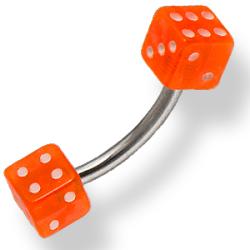 Narancssárga dobókocka végű szemöldök ékszer, hajlított orvosi fém szárral.