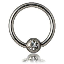 Orvosi acél, fehér köves golyózáras piercing karika.