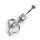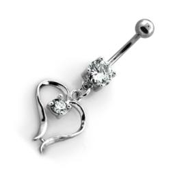 Orvosi acél hullámos szív köldök piercing fehér kővel