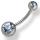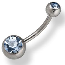 Orvosi acél kétköves köldök piercing, világoskék cirkon kövekkel.