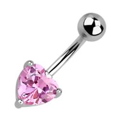 Orvosi acél rózsaszín foglalatos szív köldök piercing