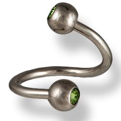 Orvosi acél spirál piercing, világoszöld köves golyókkal.