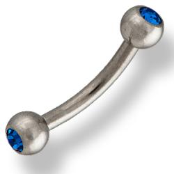 Orvosi acél szemöldök piercing, sötétkék köves golyókkal