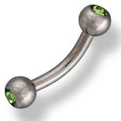 Orvosi acél szemöldök piercing, világoszöld köves golyókkal