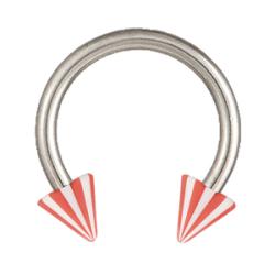 Patkó piercing, csíkos narancssárga acryl tüskével