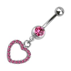 Orvosi acél rózsaszín kővel kirakott szív köldök piercing.
