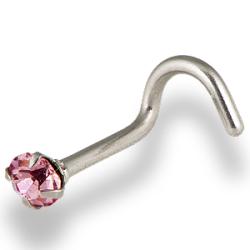 Swarovski jellegű orr piercing orvosi fém szárral, rózsaszín kővel.