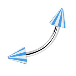 Szemöldök piercing, csíkos világoskék acryl tüskével