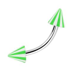 Szemöldök piercing, csíkos világoszöld acryl tüskével