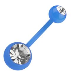 Világoskék szárú, fehér köves bioplast köldök piercing